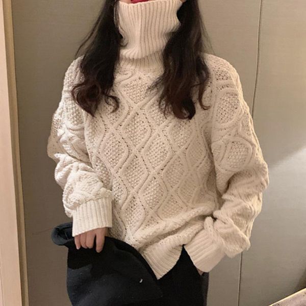 women's sweaters 2021 women knits sweater fashion long sleeve round neck solid high collar pullover casual elegant autumn winter, White;black