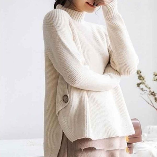 women's sweaters 2021 women and pullovers korean fashion half turtleneck irregular loose lazy all-match solid ladies thick sweater, White;black