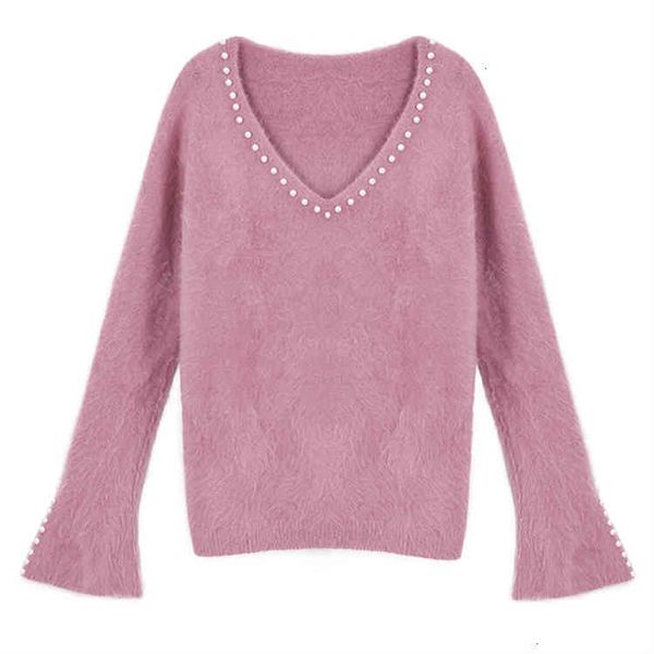 women's sweaters artificial mink cashmere sweater women spring autumn pearl v-neck pullover jumper pull femme hiver streetwear fiut, White;black