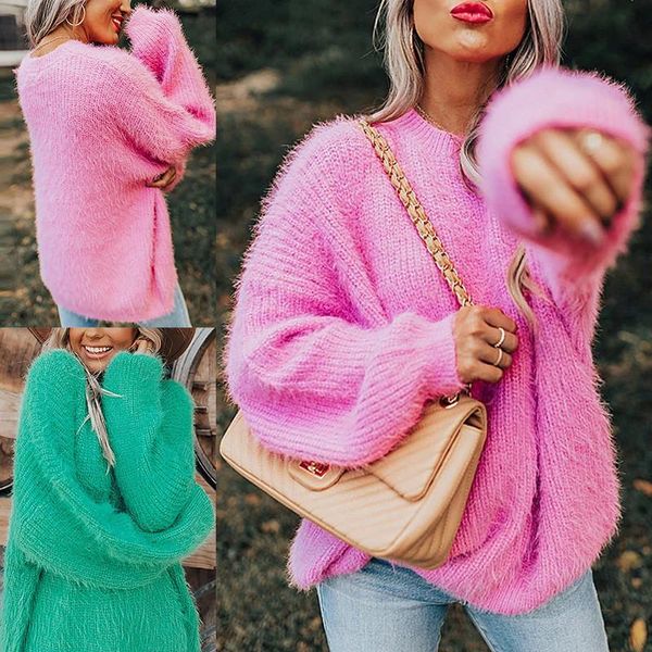 women's sweaters autumn and winter fashion solid color sweater european american round neck long sleeve casual loose lady top, White;black