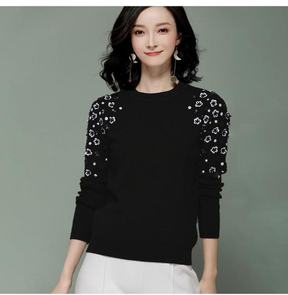women's sweaters autumn & winter fashion thick warm pullover sweater computer knitted sequined beading women sueter mujer celebrity, White;black
