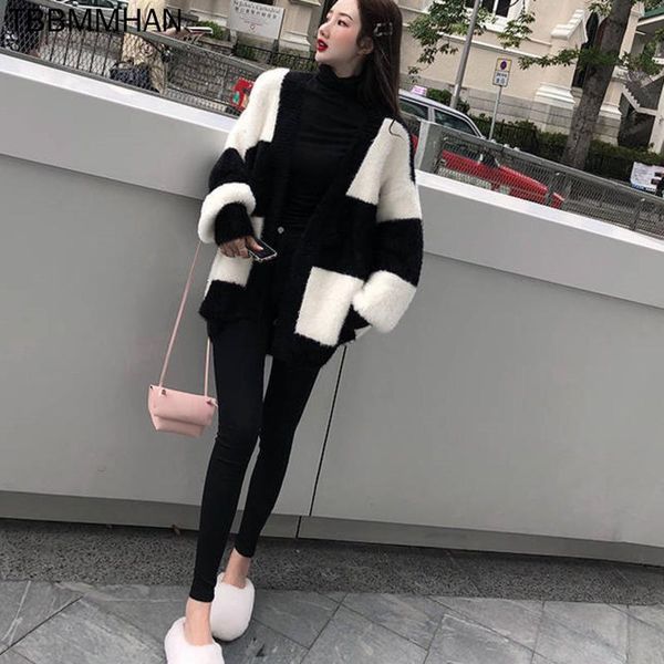 women's sweaters cardigan coat korean version in autumn winter 2021 mink fleece women loose fashion knitting long, White;black