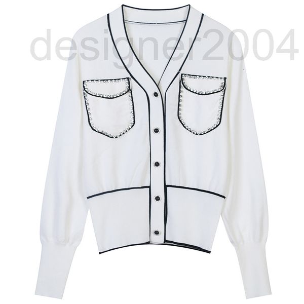 women's sweaters designer 2022 spring new stripe color matching diamond pocket stitching temperament thin simple slim fitting v-neck kn, White;black