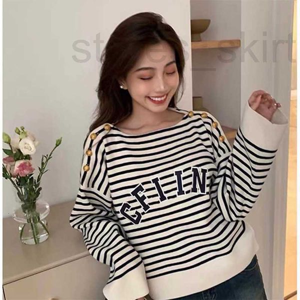 women's sweaters designer letter embroidery stripe knitting one shoulder long sleeve loose sweater lazy wind autumn winter 7pqc, White;black