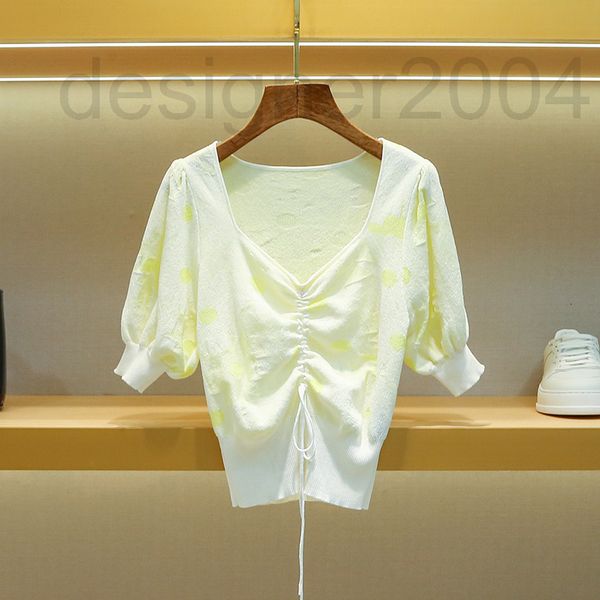 women's sweaters designer mc family peach neck short sleeve thin sweater 2022 women's autumn french bubble jacquard pulr, White;black