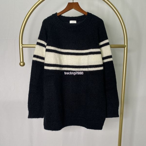 women's sweaters early spring c family round neck pullover medium long sweater loose large black and white stripe men's women', White;black