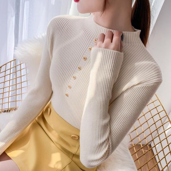 women's sweaters feminino 2021 sweater slim fit high collar button thickened knit bottoming blouse autumn and winter, White;black