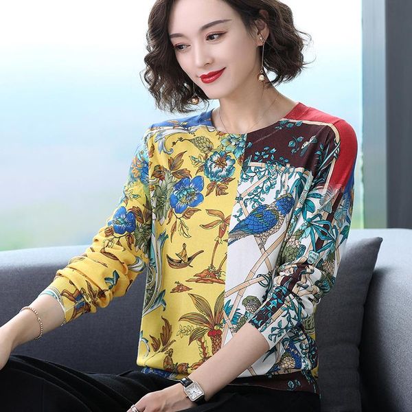 women's sweaters floral printed thin sweater women spring digital printing female knit jumpers pullover, White;black