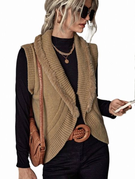 women's sweaters fuzzy trim shawl collar sleeveless duster cardigan 98ff#, White;black