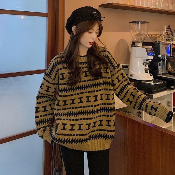 women's sweaters knitted pullover sweater harajuku winter loose oversized woman jumper, White;black