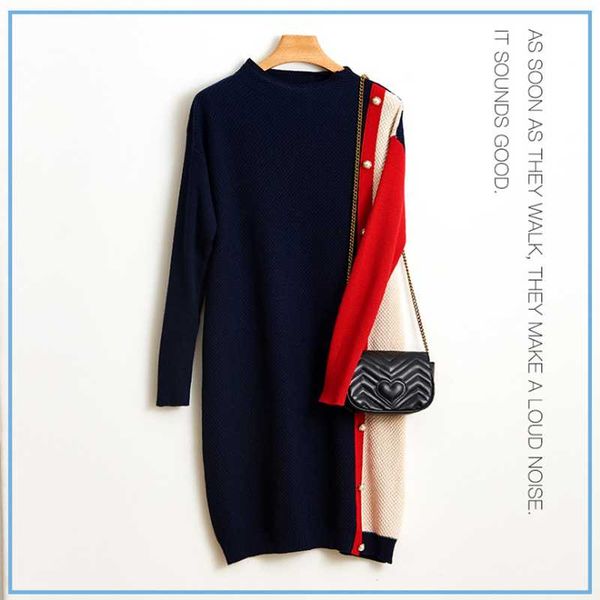 women's sweaters knitted sweater dress 2021 women female celebrity temperament waist slimming design niche round neck pullover fall, White;black
