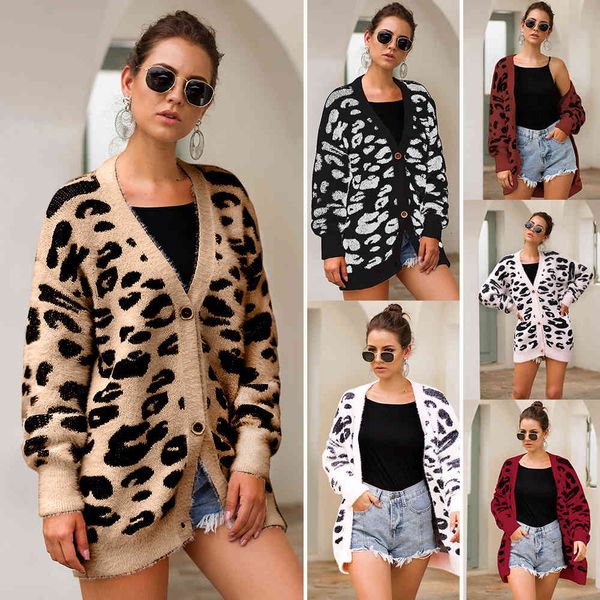 women's sweaters leopard print cardigan women autumn winter knitted casual female loose coats, White;black