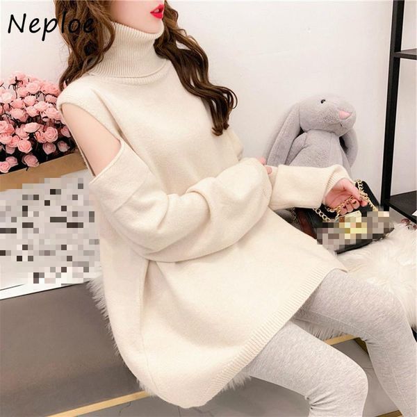 women's sweaters neploe shoulderless autumn 2021 solid turtleneck long sleeve pullovers loose casual oversized female 1f480, White;black