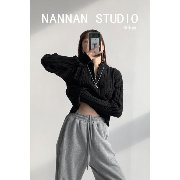 women's sweaters niche french style turtleneck half zipper sweater spring and autumn linen, White;black