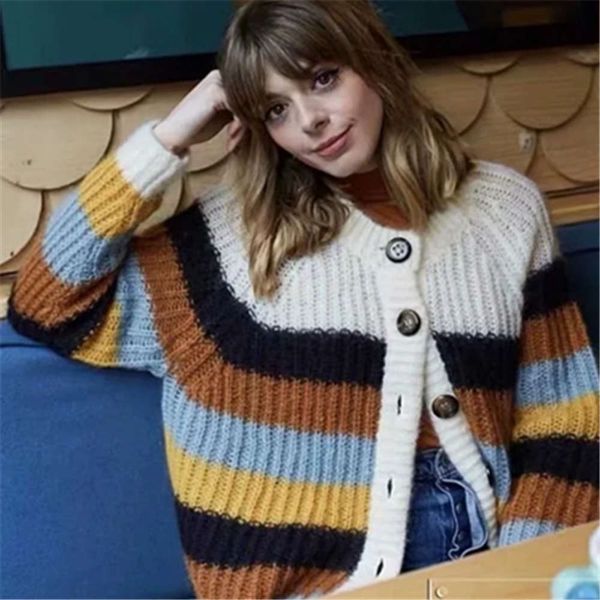 women's sweaters sweaterscontrast stripe sweater autumn winter monsoon women's single breasted loose knit cardigan drlg, White;black