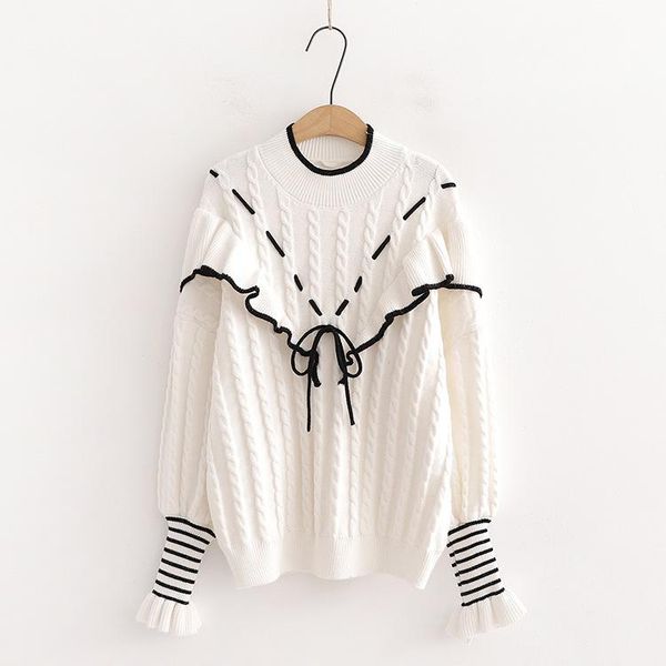 women's sweaters sweet season literary falbala lacing twist small jacquard knitting high-necked pullovers female, White;black
