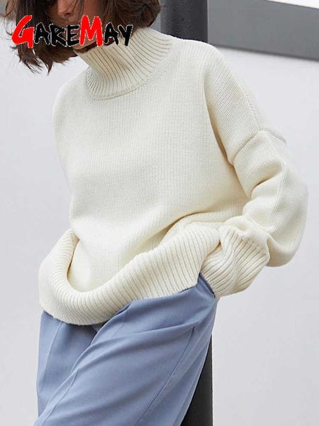 women's sweaters winter turtleneck white jumper warm knitwear green pullover thick loose elegant for 2023 230118, White;black