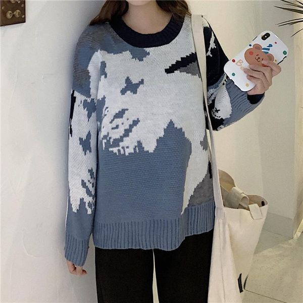 women's sweaters women knitted sweater blue white pullover loose clothing spring 2021 long sleeve round collar 990i, White;black