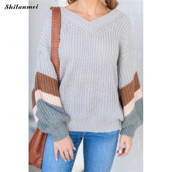 women's sweaters women pullovers 2021 v neck solid loose knitted autumn winter clothing casual jumpers sweter mujer, White;black