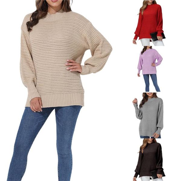 women's sweaters women solid color side slit knit sweater pullovers fall spring clothes casual loose long sleeve round collar jumpers, White;black