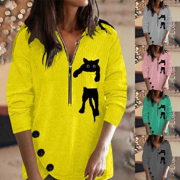 women's sweaters womens v-neck irregular zipper long sleeve fashion print casual blouse loose oversized cotton pullover, White;black