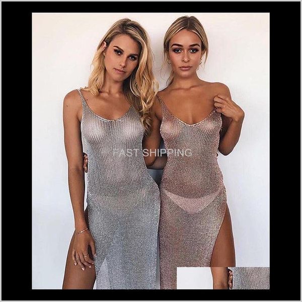 women's swimwear apparel women beach cover-ups hollow out knitted split up tank long dress cover body sheath wear seaside dro 0gnfz, White;black
