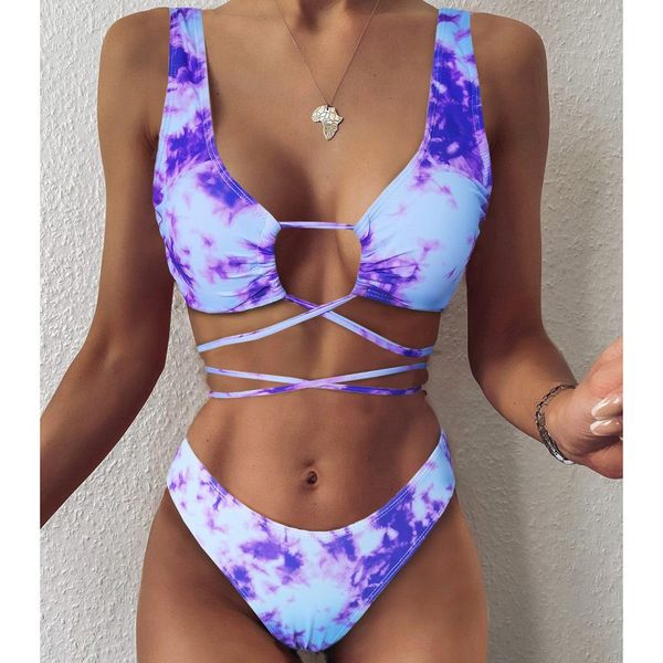 women's swimwear bikini set split swimsuit tie-dyed printed high waist female swim bathing suit 2020 on sale, White;black