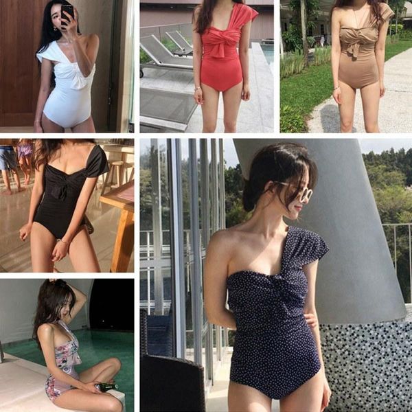 women's swimwear one piece one-shoulder triangle female slim thin fresh korean covered belly was conservative spring, White;black