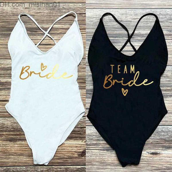 women's swimwear s-3xl gold print team bride one piece swimwear team women's swimwear apron single party swimwear summer beach sui, White;black