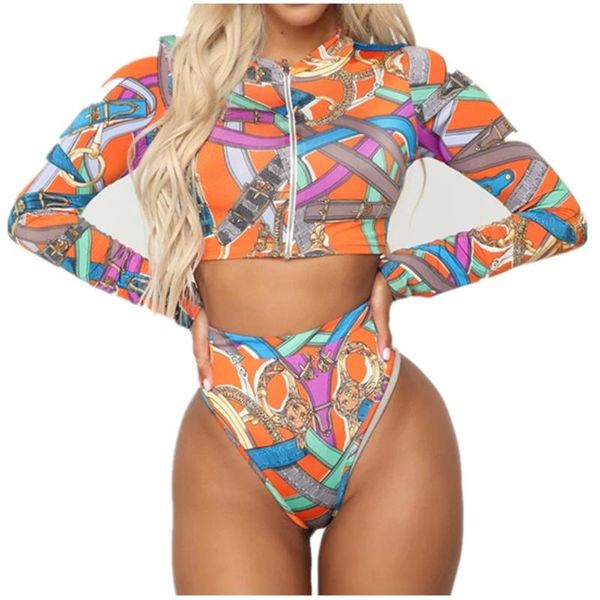 women's swimwear summer beachwear print long sleeve zip bikini fashion personality comfortable soft, White;black