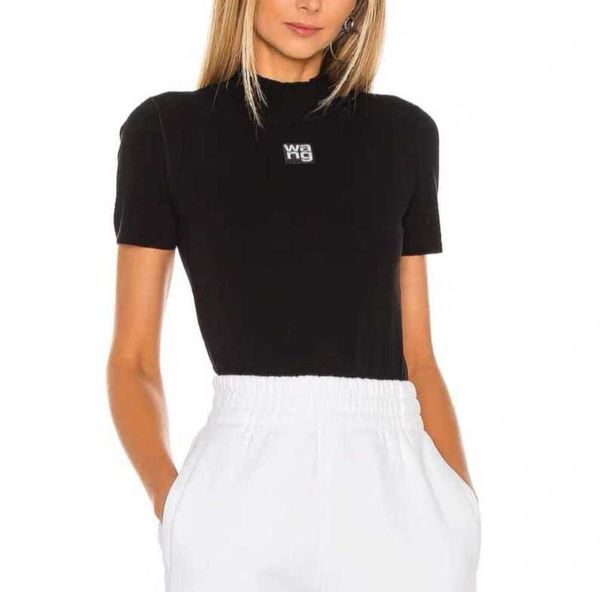 women's t-shirt 22aw wang fashion design stand collar letterss knitted short sleeve tight bottomed all-match66, White