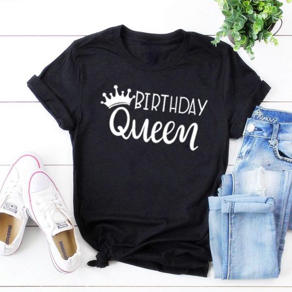 women's t-shirt birthday queen made party funny letter cotton women tshirt short sleeve tees plus size o neck clothing, White