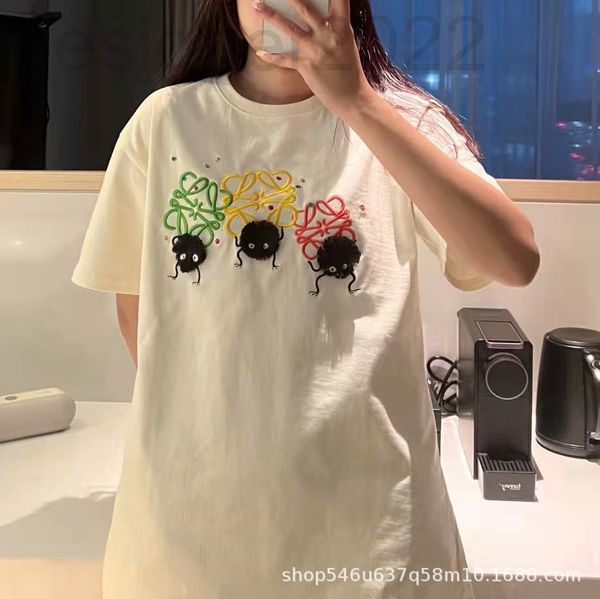 women's t-shirt designer correct version of summer coal ball embroidery casual round neck men and women lovers short sleeve cotton t-sh, White