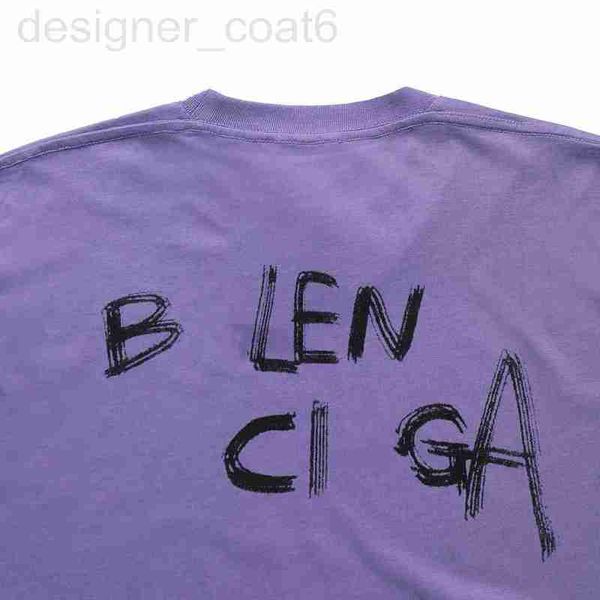 women's t-shirt designer high version 2023 summer new b family front and back english art letters large signature men's women', White