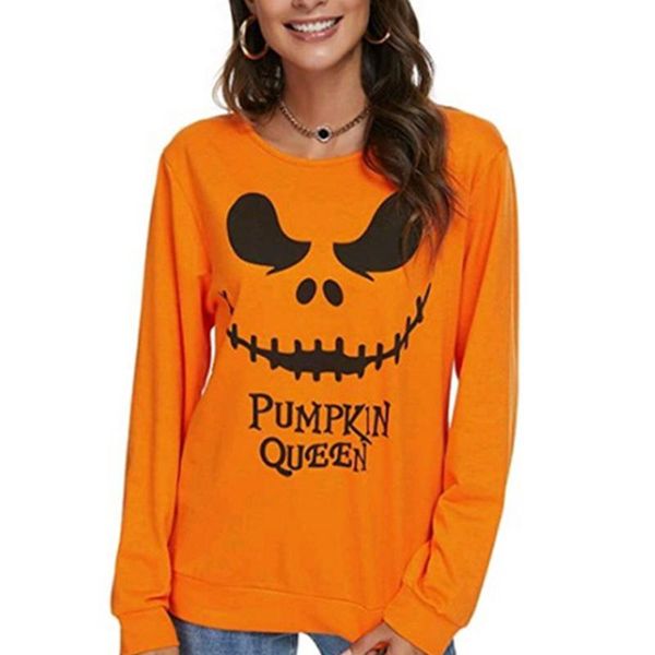 women's t-shirt fashion women halloween long sleeve pumpkin letters printed pattern round collar pullover orange/ black, White