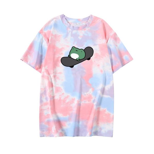 women's t-shirt female tie dye cartoon cute skateboard frog printing pattern summer japanese korean casual harajuku style fashion, White