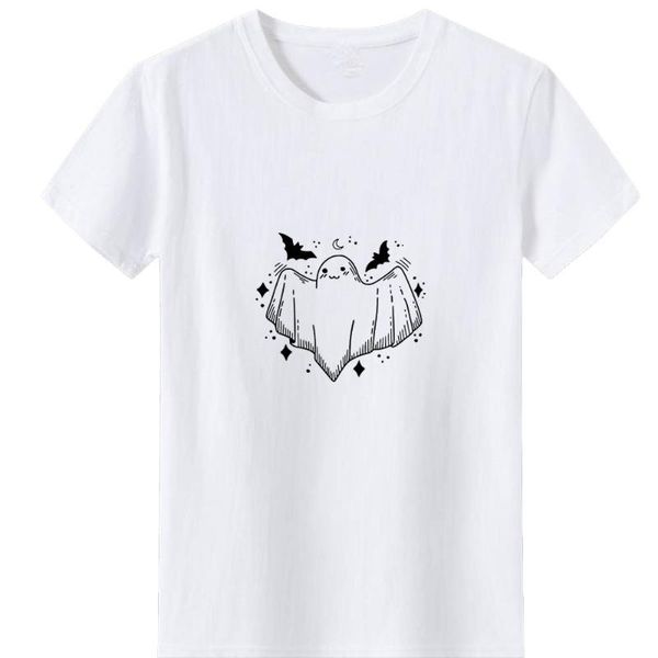 women's t-shirt ghost bat woman tshirts casual short sleeve hipster graphic black red letter tee femme simple wild t shirt women, White