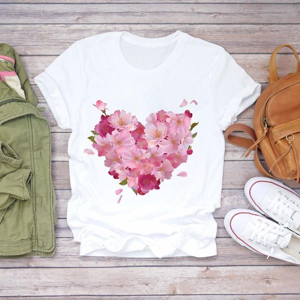women's t-shirt graphic female tee womens t-shirts floral flower lady love fashion clothing cute women print ladies t, White