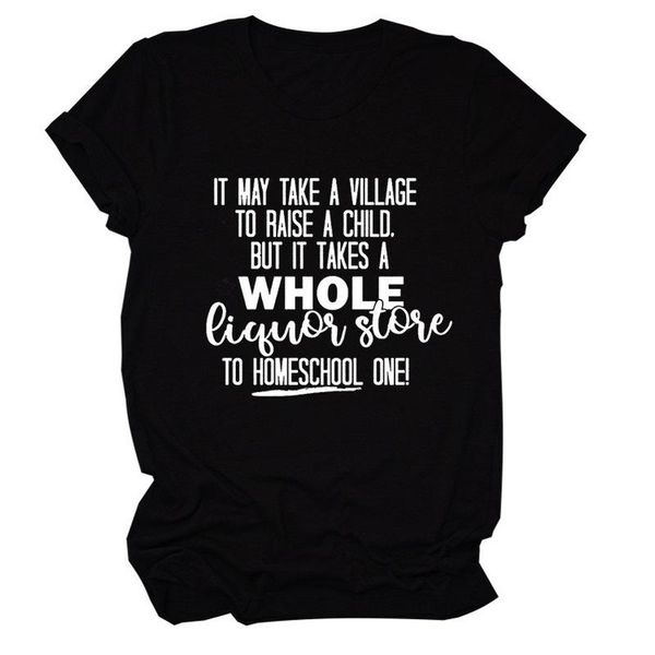 women's t-shirt it may take a village letter print women t shirt short sleeve o neck loose tshirt ladies fashion tee clothes mujer, White