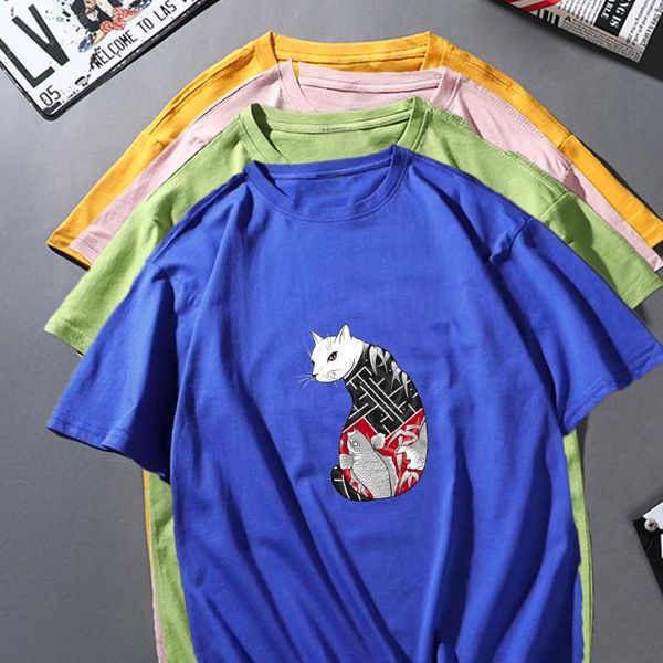 women's t-shirt kawaii cat t shirt women funny cartoon print cotton tshirt harajuku graphic summer short sleeve fashion tee female, White