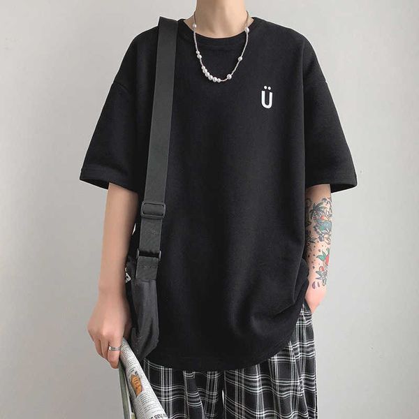 women's t-shirt letter shortsleeved tshirt men's summer simple and loose tide brand casual dent halfsleeved shirt couple oversized, White