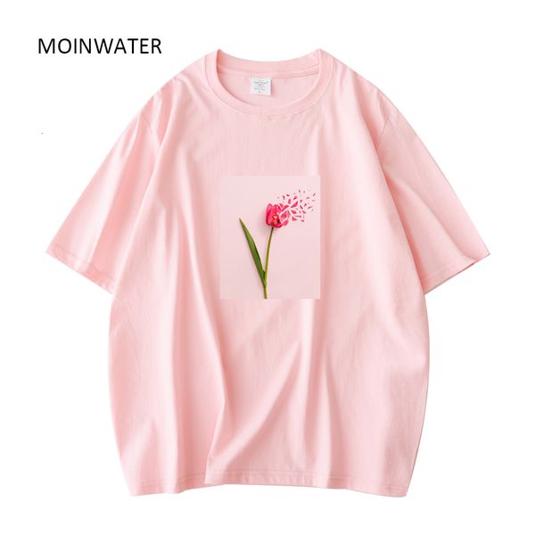 women's t-shirt moinwater women rose floral pattern tees female cotton streetwear short sleeve t-shirts lady summer mt21030 230314, White