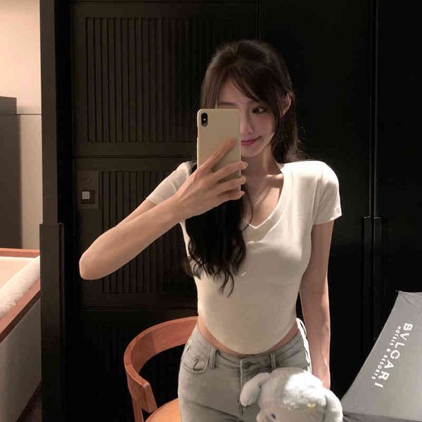 women's t-shirt [oxygen spice girl]versatile thin white with short inside women's pure desire girl v-neck sleeve t-shirt chao i2fb