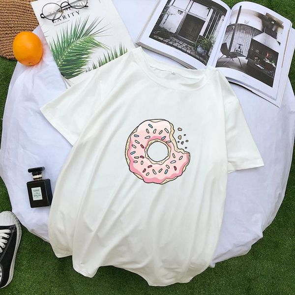 women's t-shirt plus size -xxl harajuku summer t shirt women kawaii doughnut print short sleeve loose tee femme casual female tshirt, White