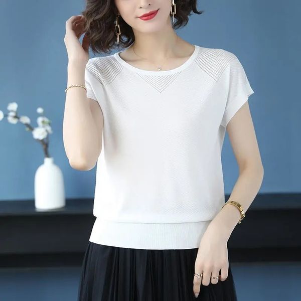 women's t-shirt summer short sleeve slim knitted women casual pullover tee korean style thin solid ladies knitwear female ym6, White