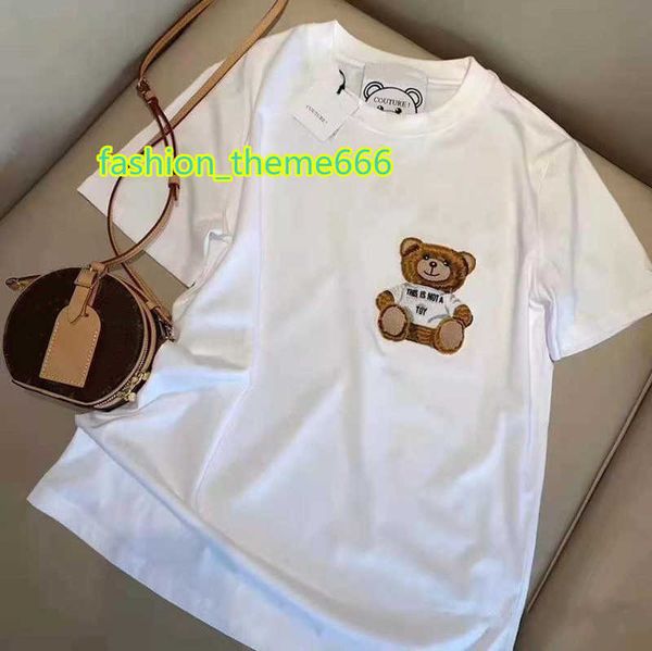 women's t-shirt women's tees summer new t-shirt flocking three-dimensional cartoon bear letter embroidery loose short sleeves for, White