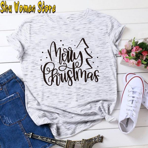 women's t-shirt women happy christmas letter print tree year winter season cute merry tshirts t shirt ladies graphic fem, White