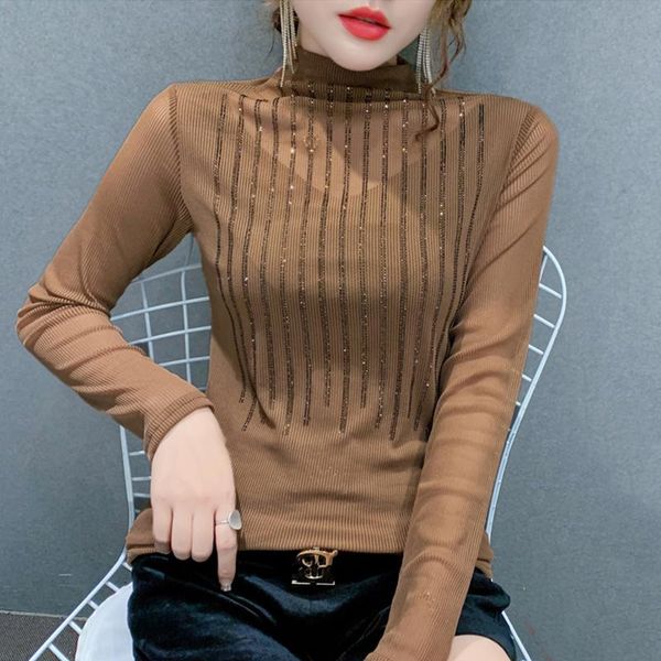 women's t-shirt women long-sleeve 2021 arrival spring and summer turtleneck net yarn female black red brown korean style c26, White