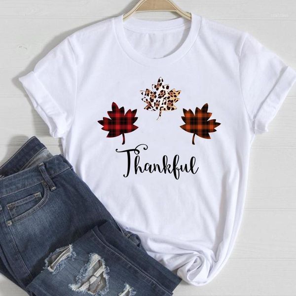 women's t-shirt women plaid fashion casual thanksgiving halloween autumn fall graphic clothing tshirt kawaii t female tee print, White