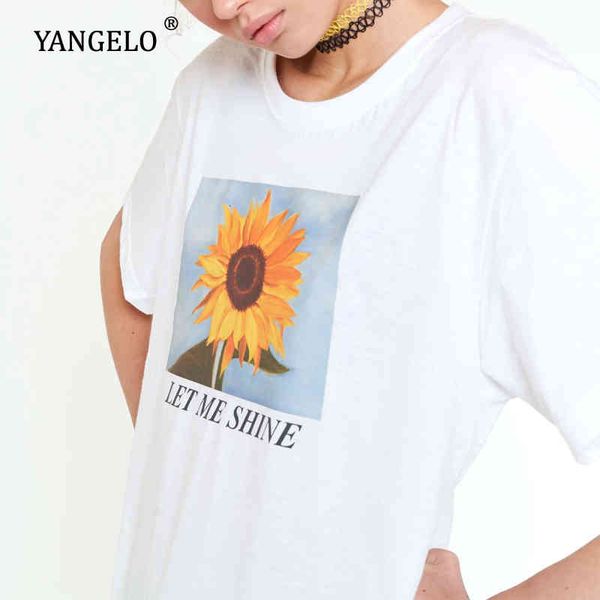 women's t-shirt yangelo let me shine sunflower print women casual tee female girl aesthetic t shirts cotton plus size fc3n, White